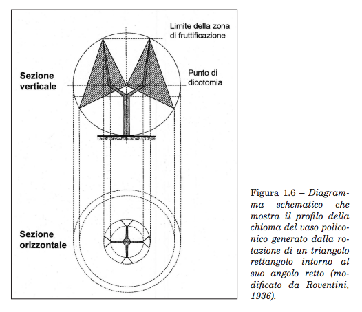 Questa forma di allevamento, infatti, permette di avere una pianta equilibrata dal punto di vista vegetativo e produttivo, complessivamente più arieggiata, più illuminata e più resistente allo sviluppo di malattie.